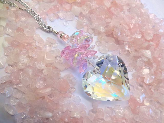 ぷっくりハートのサンキャッチャーはオーロラ加工がしてあり太陽のあたる面とあたらない面で別の色を発しますので色々な角度から楽しんでいただけると思います。